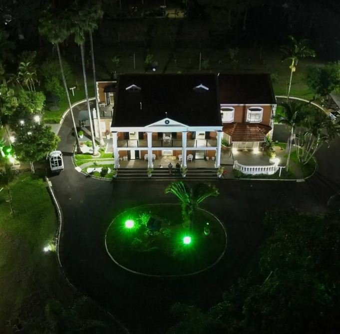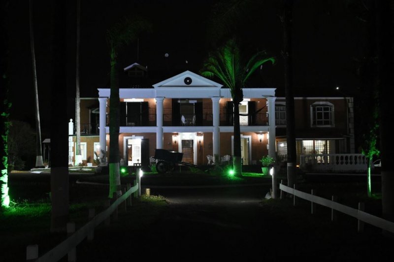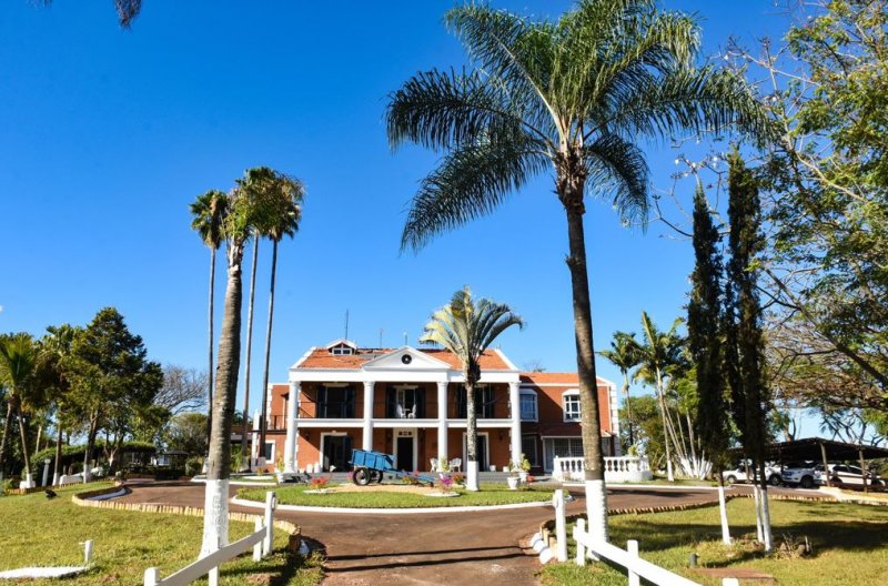A casa sede é um sobrado com 800m² de construção que inclui 7 suítes, 8 banheiros, 1 cozinha, 1 sala de jantar, 1 sala de TV, 1 escritório e biblioteca com lareira, 1 lavanderia, 3 dispensas, varandas, 1 sótão com 2 caixas de água potável, 1 bomba pressurizadora, 1 boiler de 800 litros para água quente, placas solares, sistema de alarme e câmeras. A casa está totalmente mobiliada com móveis centenários, utensílios de cozinha, ar-condicionado Fujitsu, camas, aparador, guarda-roupa, escada em madeira, quadros, mesas, cadeiras, sofás, poltronas, abajur, ventilador, TV, som, entre outros. Há ainda uma garagem para 6 carros coberta com iluminação e câmera.