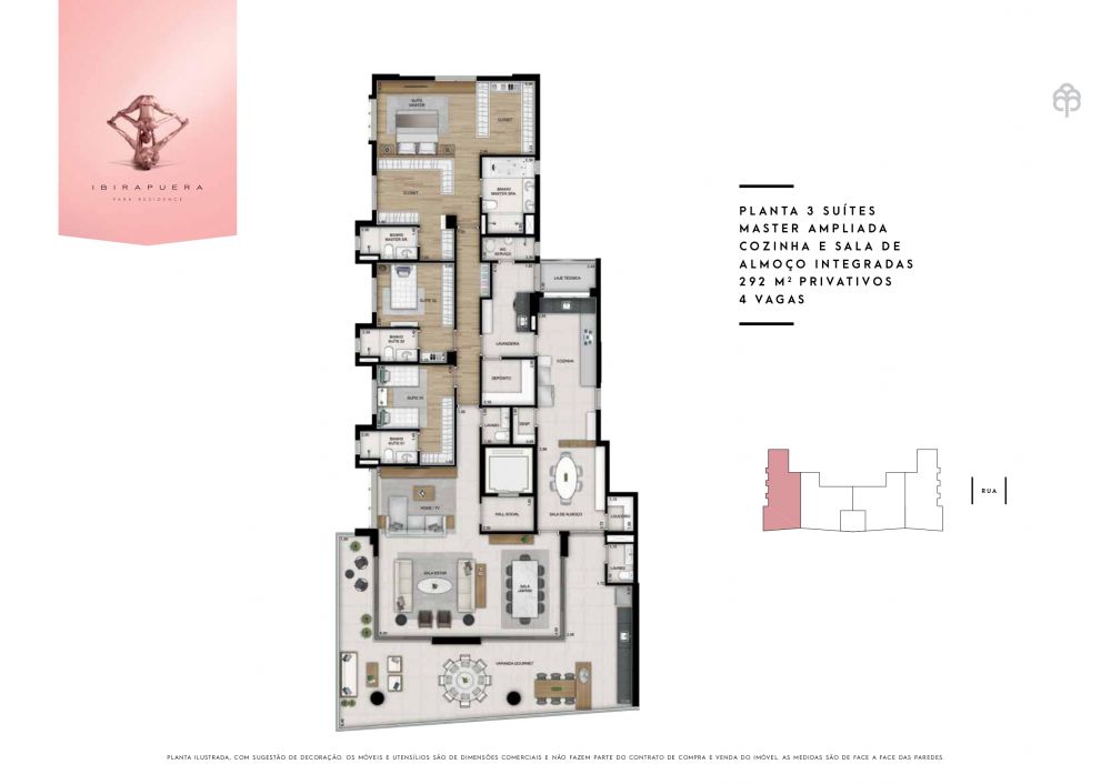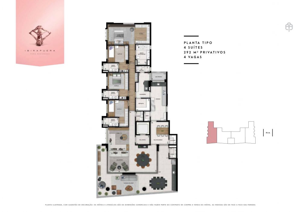 - 80 apartamentos tipo (274m² (meio) e 292m² (laterais))