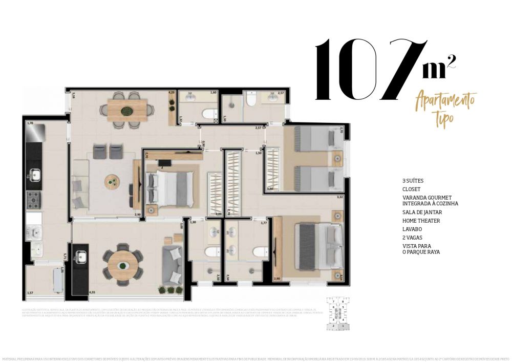 - Área Privativa: 107 m²