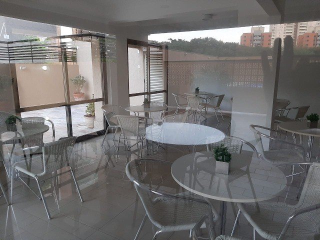 O apartamento vem equipado com piso porcelanato em todos os cômodos, armários em todas as suítes, ventiladores, ar-condicionado em uma das suítes, uma ampla sala com dois ambientes e ventilador, cozinha com armários e mesa, quintal coberto com cerca de 14m² e tela de proteção, lavanderia com armário, lavabo e sacada ampla na sala e suíte com tela de proteção.