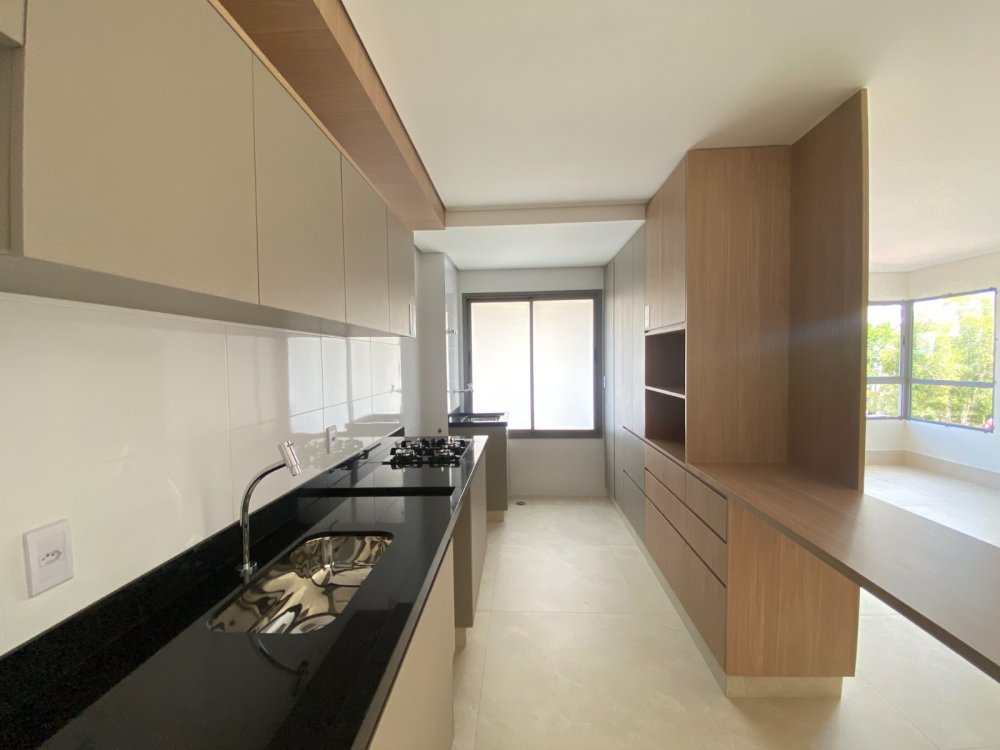 Varanda Gourmet Panorâmica: Gourmet integrado ao living, perfeito para receber amigos e desfrutar da vista, com ponto a gás.