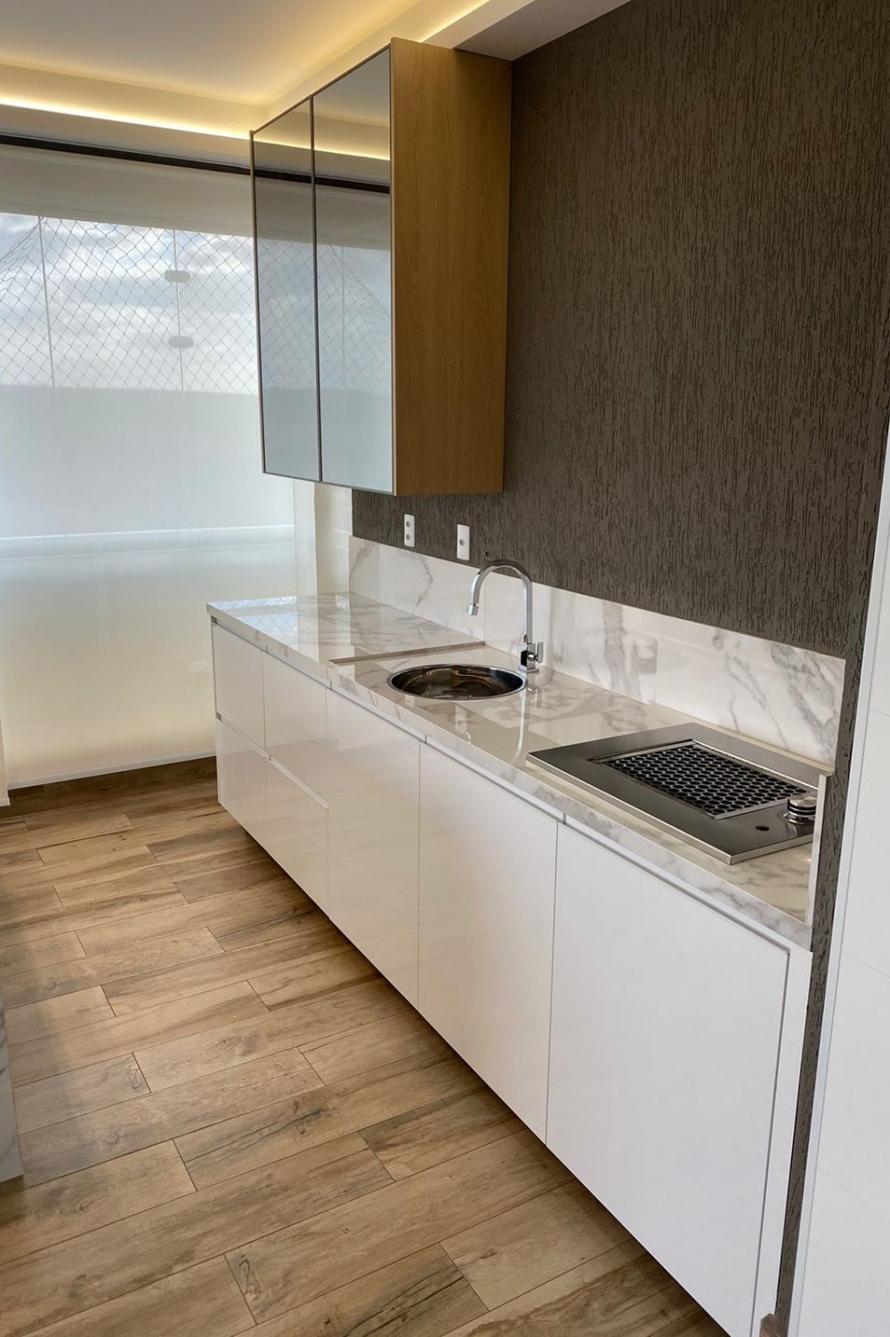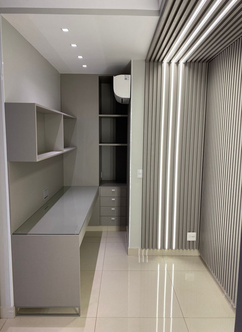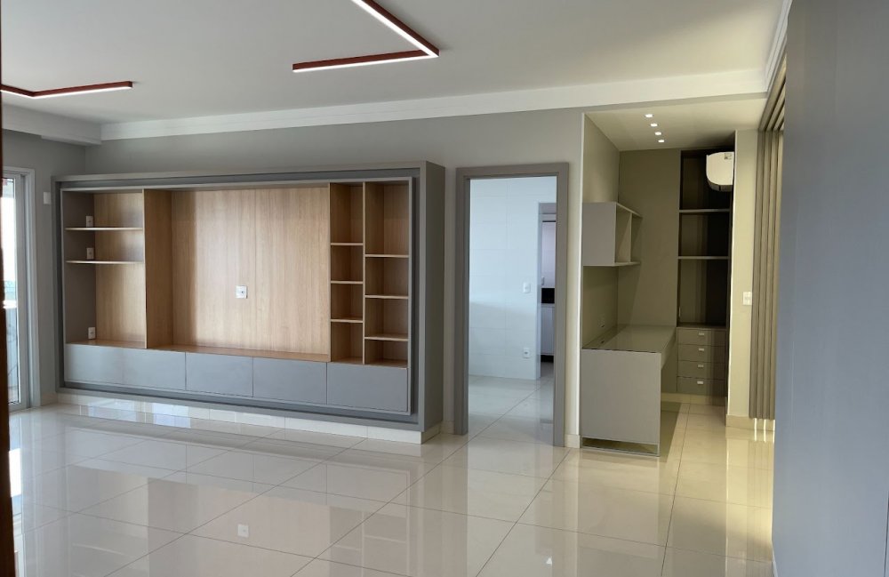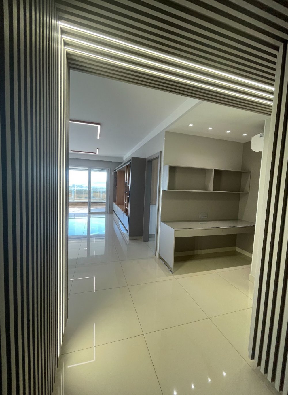 SOBRE O APARTAMENTO: Área de Serviço Separada da Cozinha com Banheiro de Funcionário, Ampla Cozinha com Despensa, Sala 03 Ambientes (com 3 entradas de ar condicionado) + Home Office Varanda Gourmet (Com ponto ar condicionado) com 27m² (integração com sala e Cozinha) Área de dormitório totalmente isolada Espaço para roupeiro 3 Suítes (com opção de 4 dormitórios com 2 Suítes) Suíte Master com Closet / Ducha Dupla / Cuba Dupla Persianas automatizadas Piso Porcelanato 80x80 Pedras em Porcelanato Esculpido.