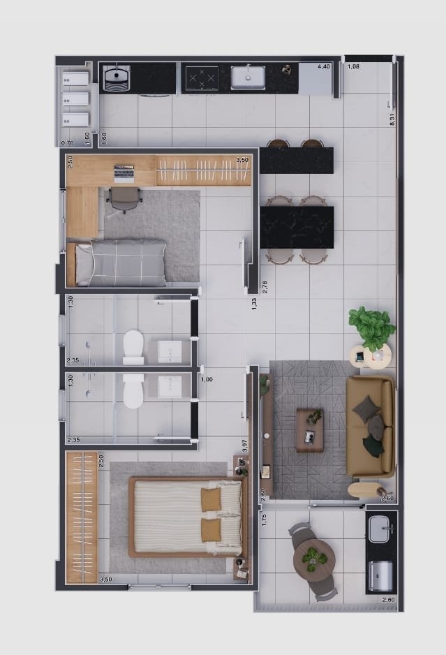 - 67m² de Luxo: Espaços amplos e elegantes, criando um ambiente perfeito para você e sua família.