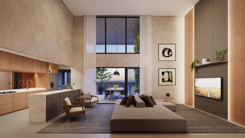 O Hype Residence é projetado para aqueles que apreciam design arrojado e personalidade em cada detalhe. Com pé direito duplo no living, este apartamento oferece uma atmosfera única de sofisticação.