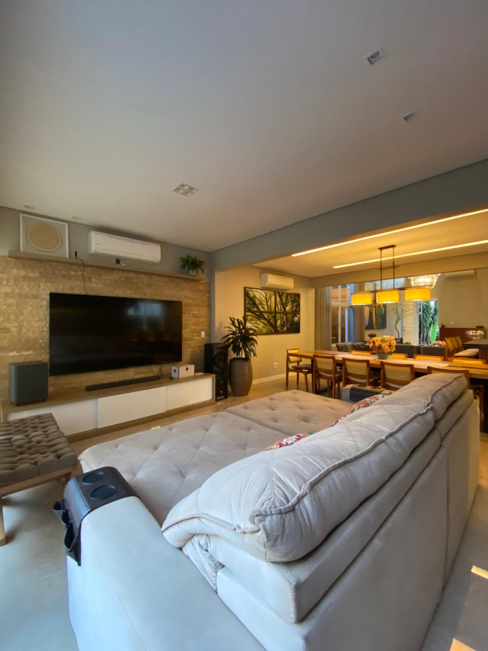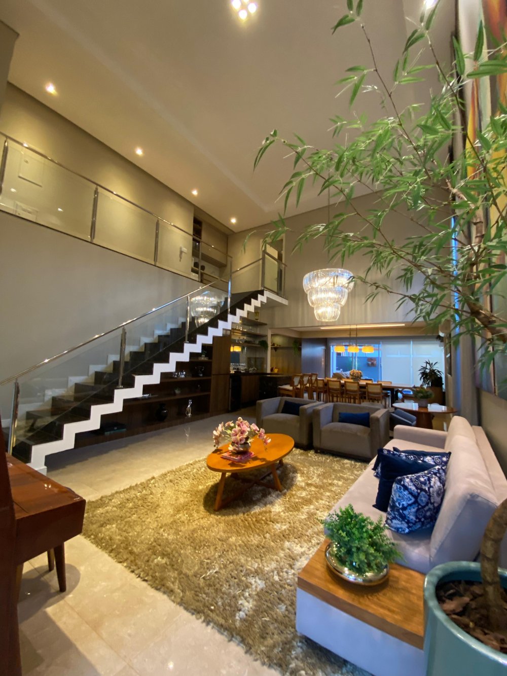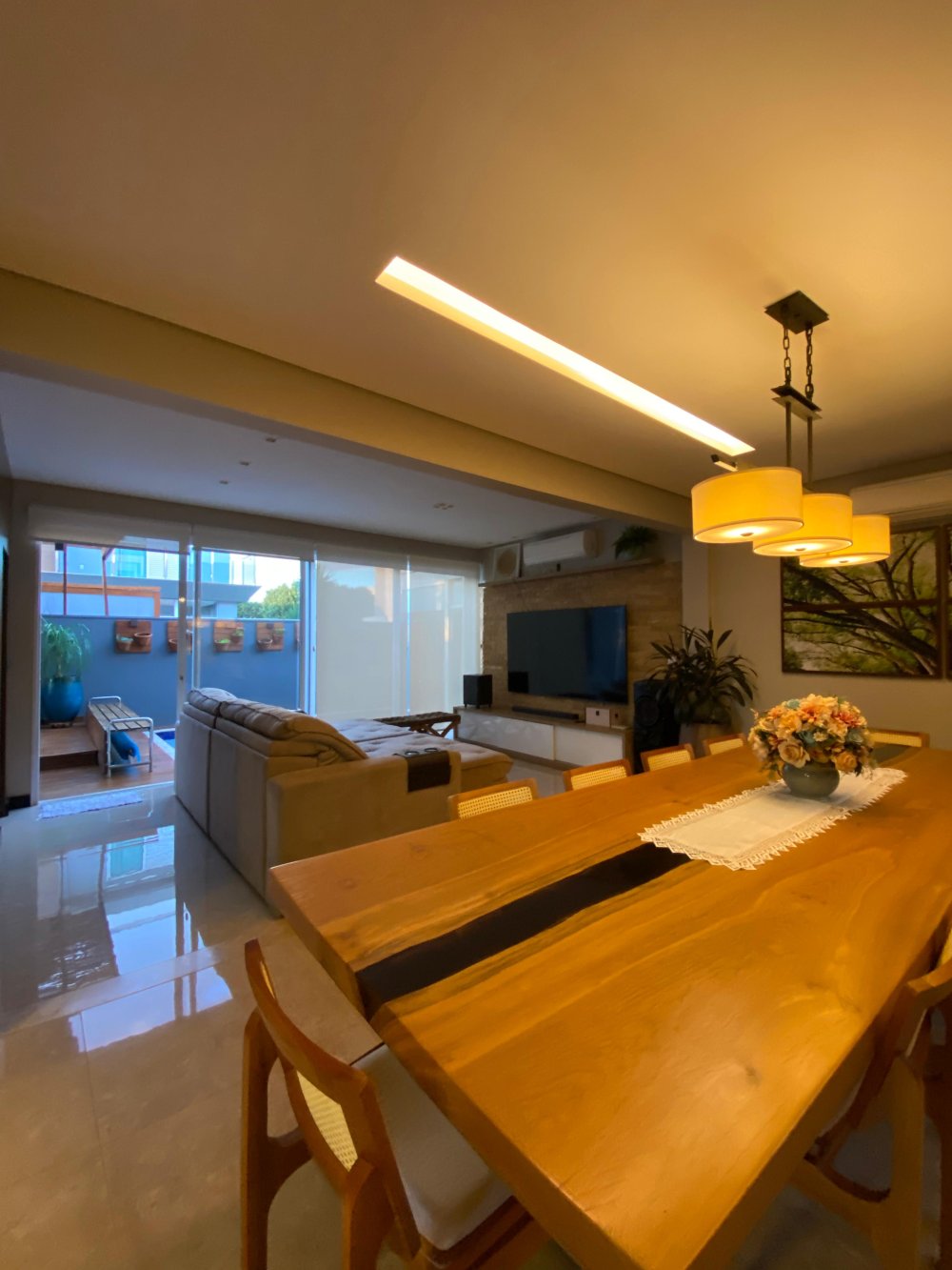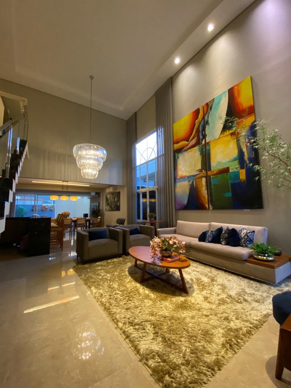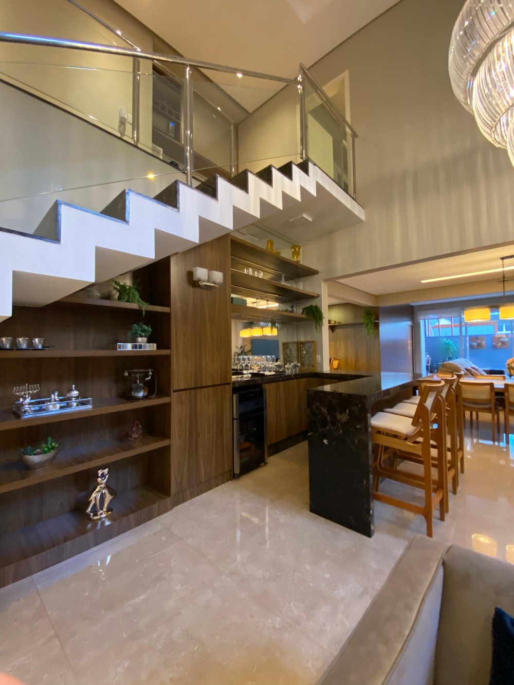A sala ampla com pé direito duplo e três ambientes convida para momentos de convívio e relaxamento, a cozinha integrada com a área gourmet e dispensa facilita a preparação de deliciosas refeições para compartilhar com amigos e familiares.