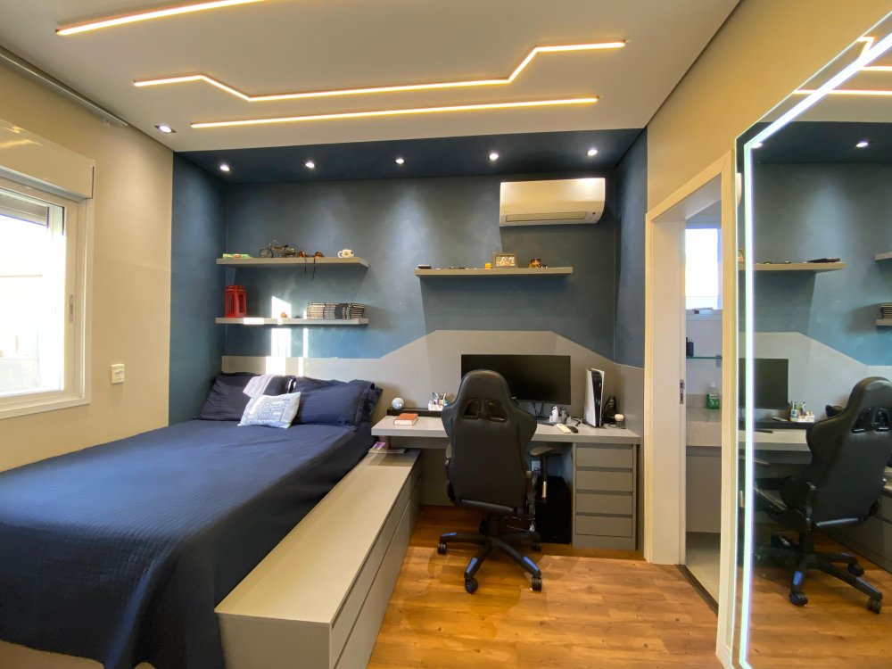 No piso superior, três suítes oferecem um espaço de descanso tranquilo, enquanto um espaço de apoio com pia e frigobar complementa a praticidade, um escritório proporciona um espaço tranquilo para trabalhar ou estudar. No andar inferior, uma suíte adicional aguarda para receber seus hóspedes com conforto.