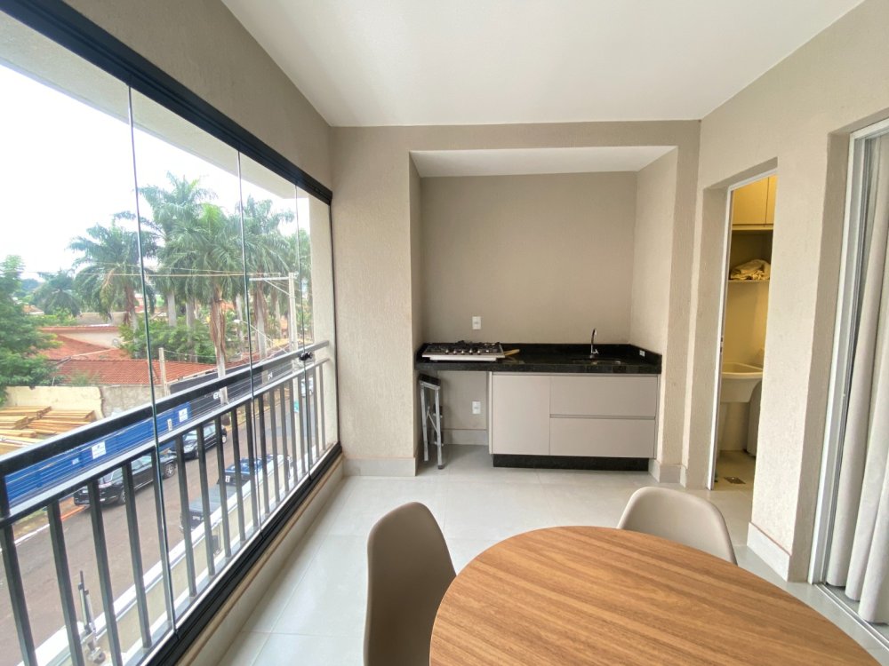 Varanda gourmet com fechamento em vidro, ponto de gás e elétrico