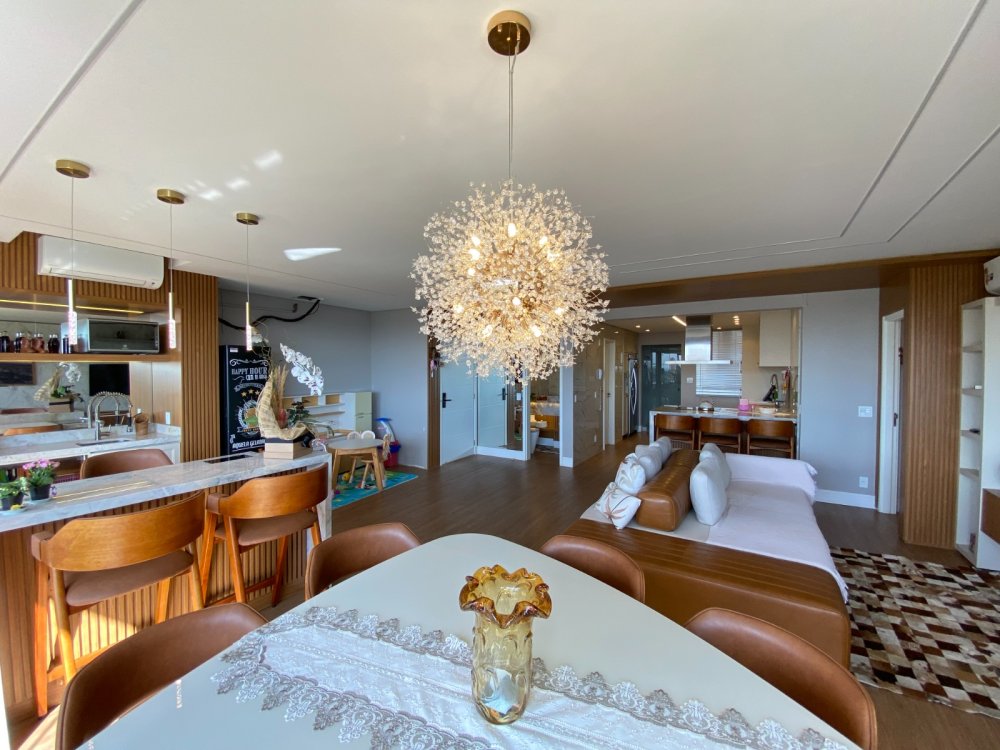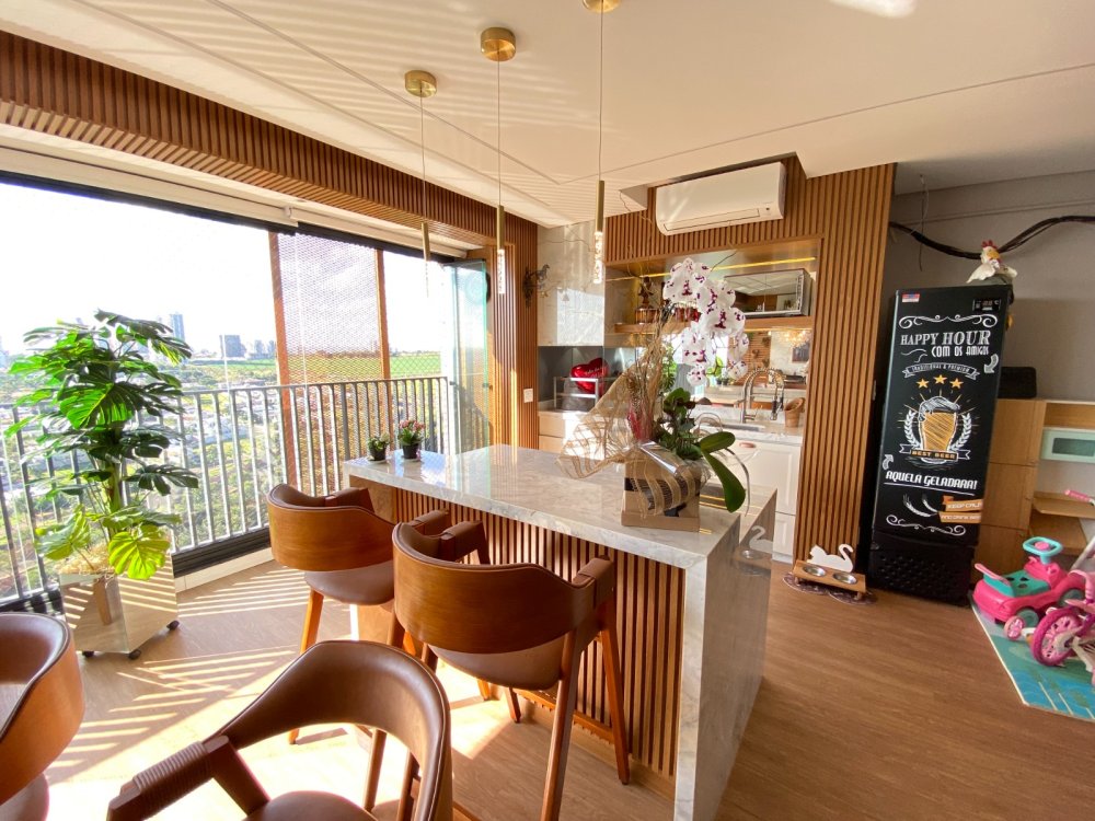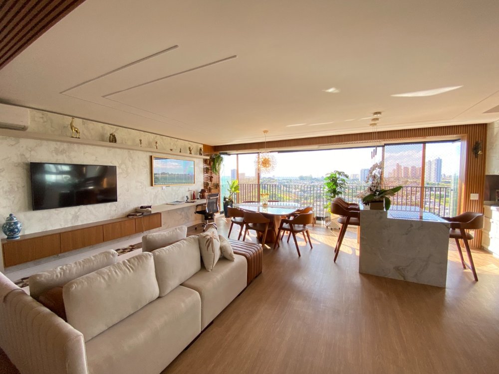 Sala espaçosa integrada à cozinha e à varanda gourmet
