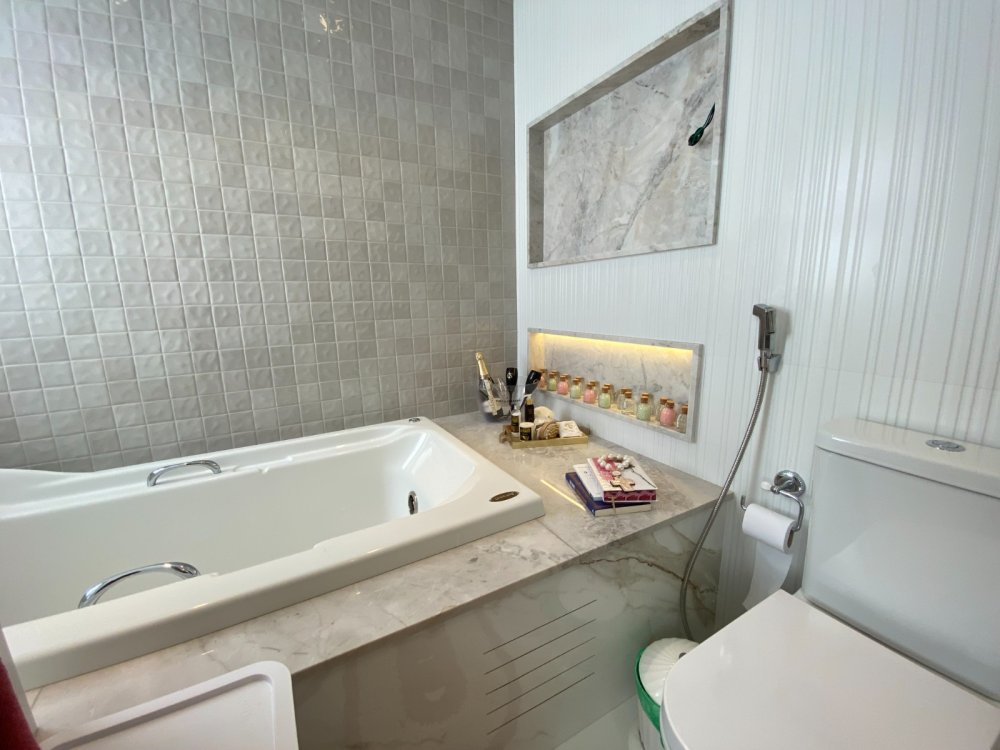 3 suítes, sendo uma master com closet, banheira e ducha dupla
