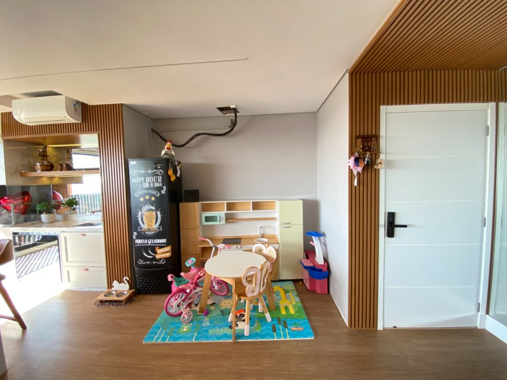 Varanda gourmet nivelada com a sala, totalmente fechada em vidro