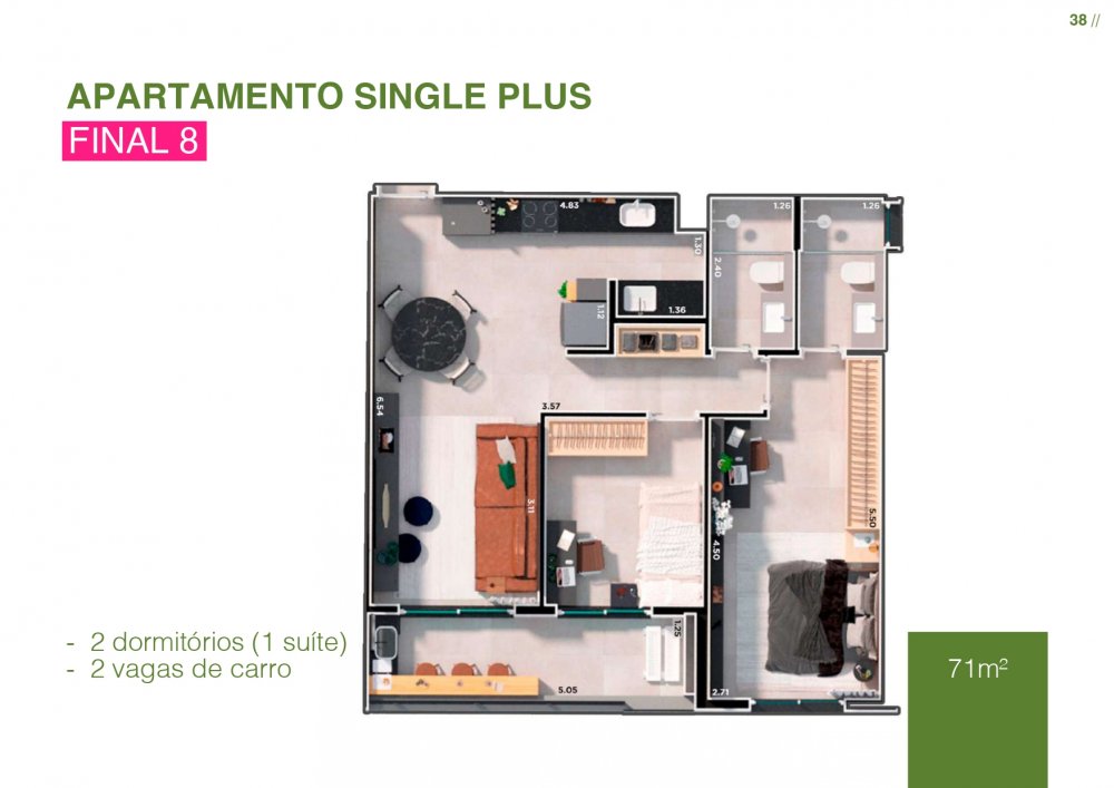 | Apartamento | R$ 551.377,13 | 71 m² | 71 m² | 2 | 1 | 2 | 2 |