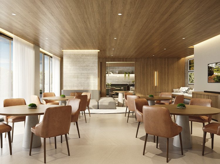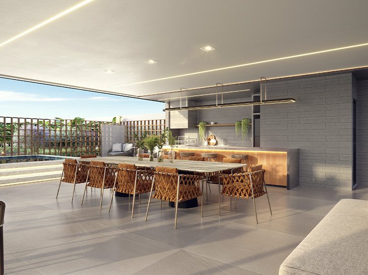 Pé-direito elevado nas salas e varandas do 28º pavimento