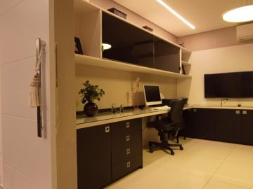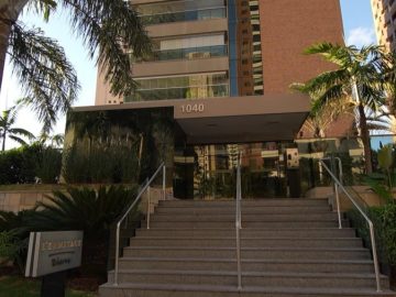 Ambientes planejados com móveis FLORENCE, projeto luminotécnico, piso em mármore Crema Marfil e madeira de lei Jatobá. Possui elevador social privativo, elevador interno de cargas, escritório, cozinha com copa e despensa, 2 lavabos, dormitório de serviço e 6 vagas de garagem com depósito.