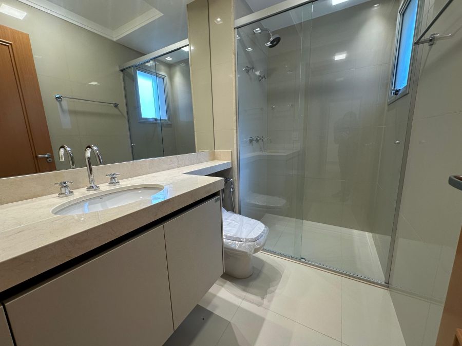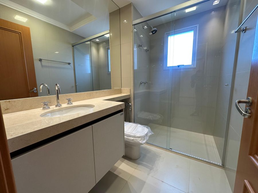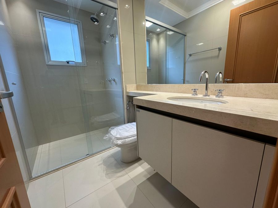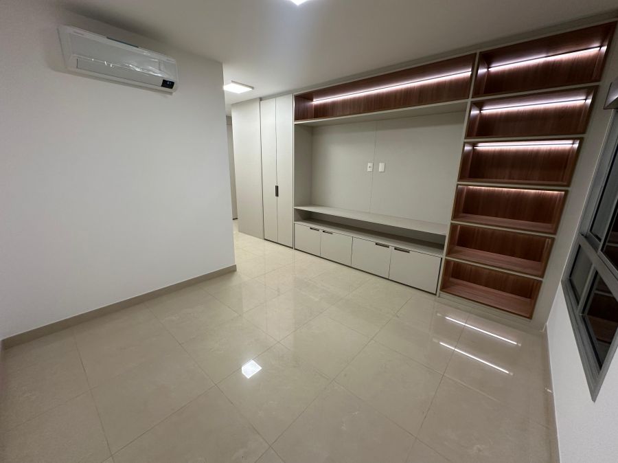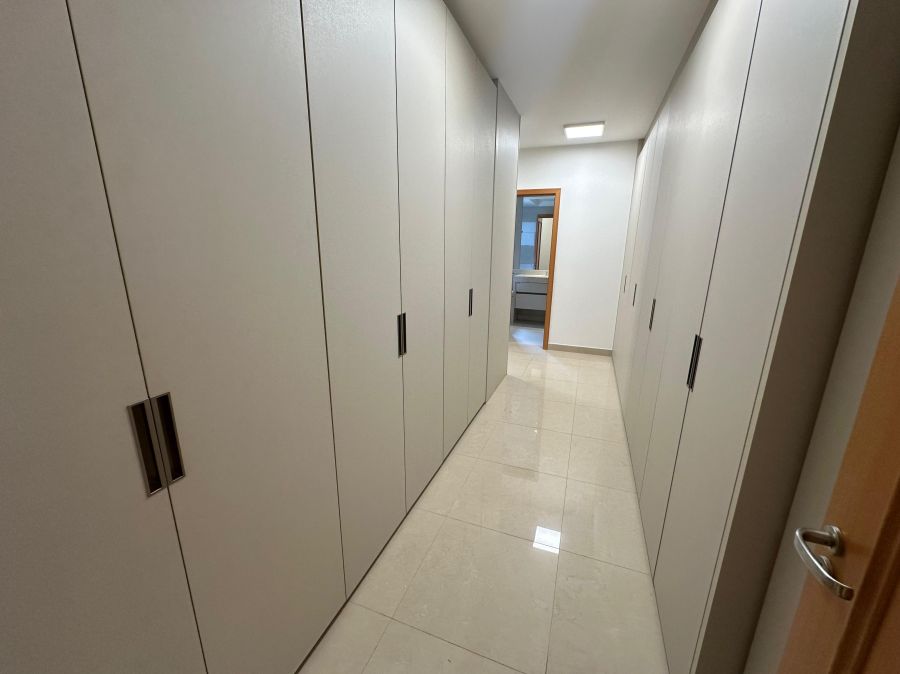 Na área íntima, o imóvel oferece 4 suítes espaçosas, todas com armários planejados e ar-condicionado, garantindo conforto absoluto para toda a família. Localizado em andar intermediário, combina vista agradável com praticidade.