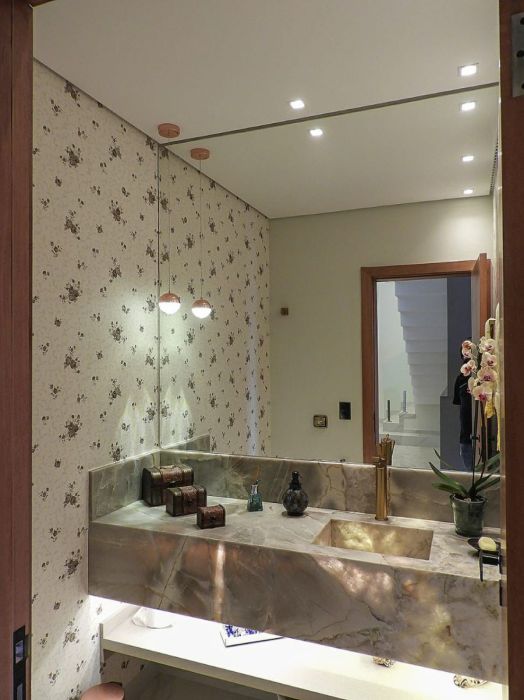 - Televisores embutidos em painel/espelho nos quartos – design moderno e sofisticado.