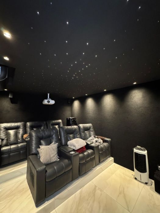 - Sala de cinema com revestimento acústico – sensação real de cinema dentro de casa.