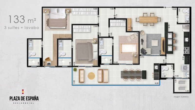 133 m² | 3 suítes + lavabo