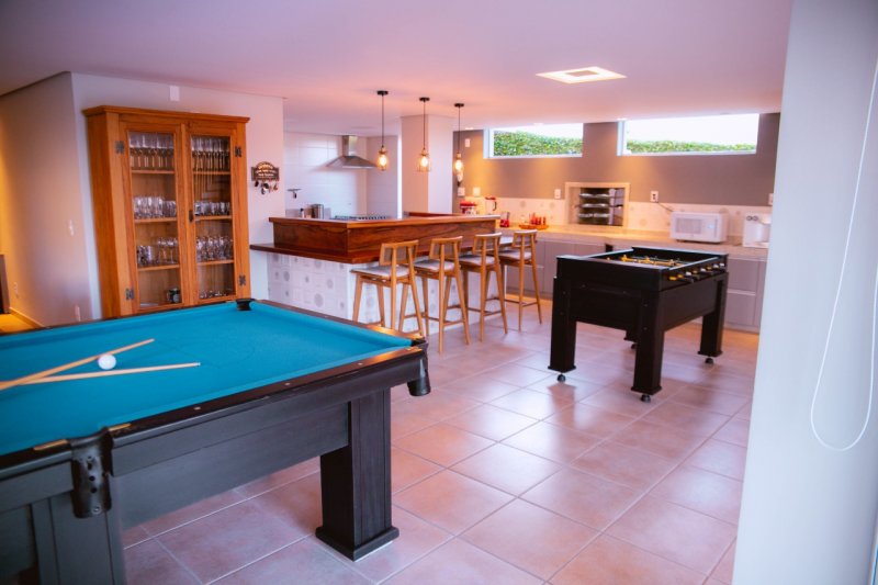 - 5 amplas suítes (acomoda tranquilamente até 14 pessoas).